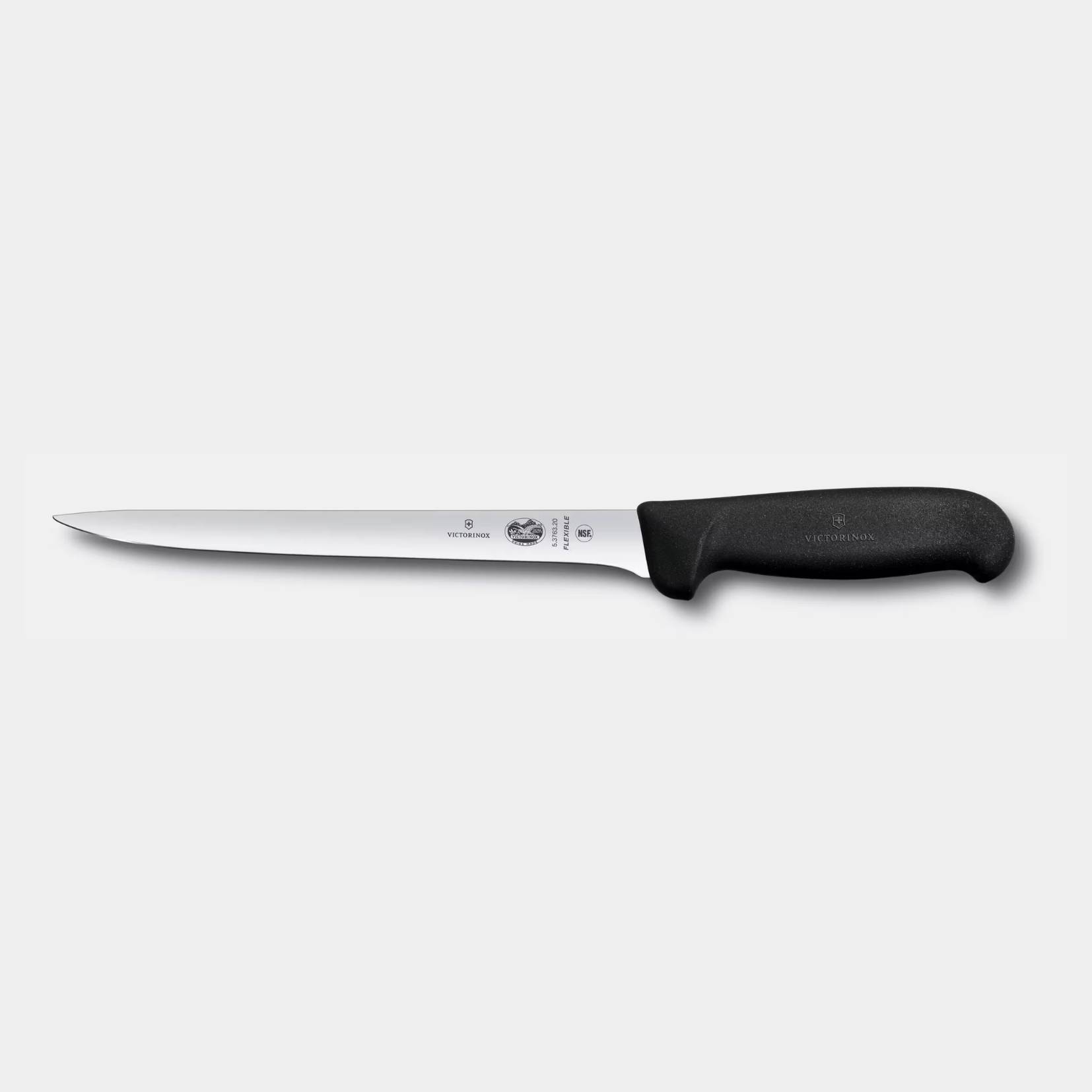 Rebana con precisión profesional. El cuchillo para carne y fiambres Victorinox Fibrox de 20 cm está diseñado para cortes largos y uniformes en piezas grandes de carne, embutidos y otros alimentos. Su hoja recta y delgada permite rebanadas finas sin esfuerzo, mientras que el mango ergonómico de Fibrox antideslizante ofrece seguridad y comodidad durante el uso prolongado. Fabricado en Suiza con acero inoxidable de alta calidad, es una herramienta confiable para cocinas profesionales y entusiastas exigentes.